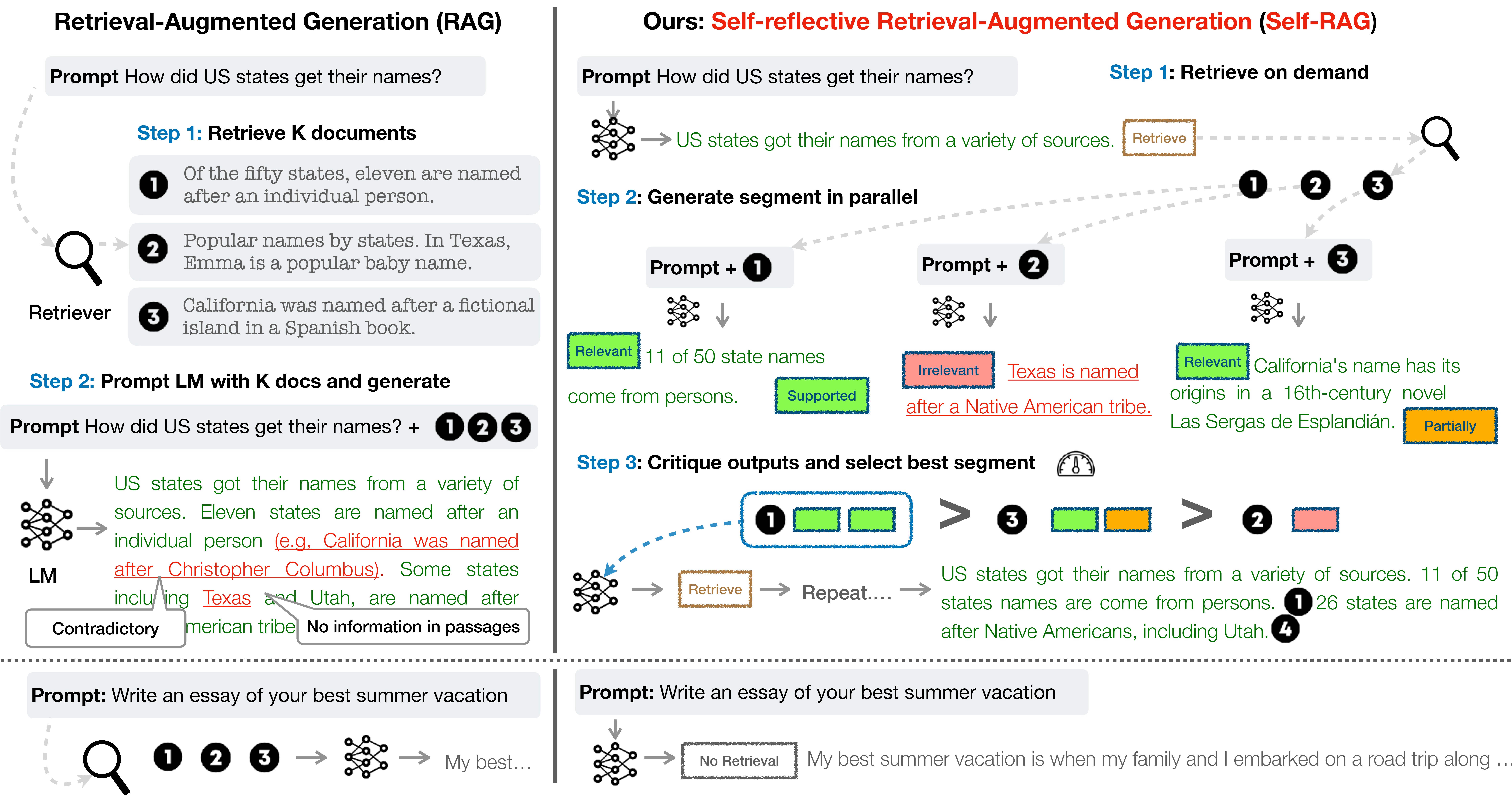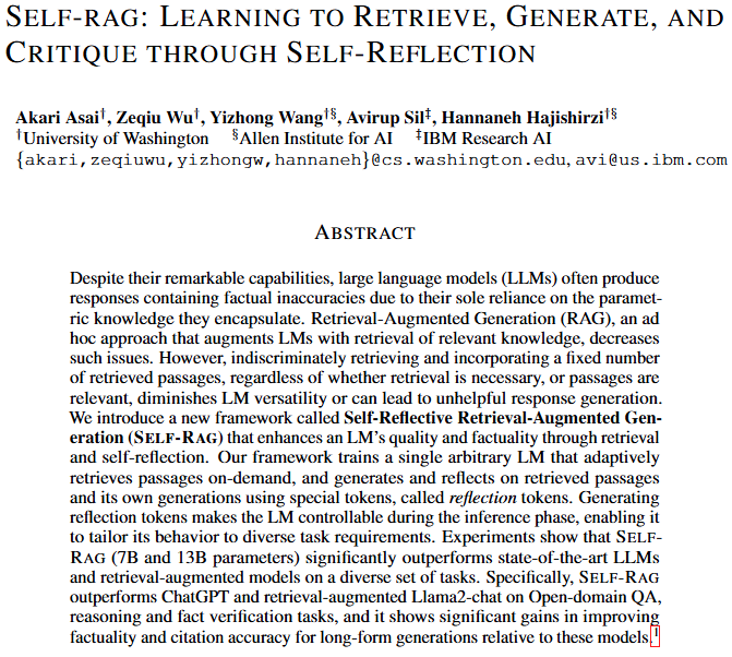 Self-RAG 可以在生成时随时检索和插入段落,并且只要它们被上下文标记特殊词元 <paragraph>、</paragraph> 包围,就可以识别它们。Self-RAG 找到相关的插入文档,并生成完全有证据支持的答案。