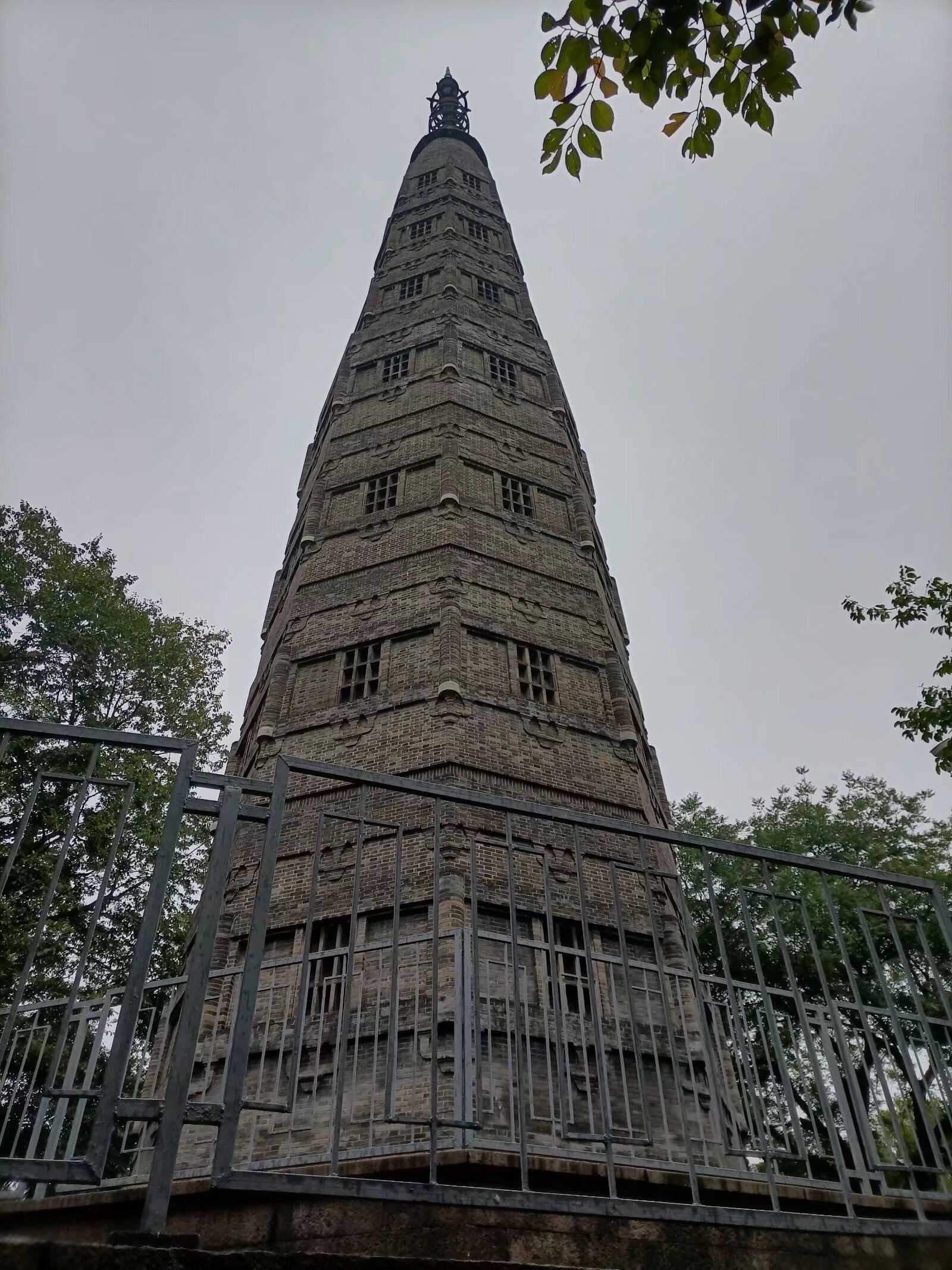 “莫听穿林打叶声,何妨吟啸且徐行。”欲穷西湖目,更上一座山。西湖北岸的宝石山就是一个好去处,走在青石阶上,欣赏沿途植物,望着远处朦胧的湖与山,不一会儿,就到了塔下。全塔以石砌成,不得不佩服古人的智慧,塔身高耸,宛若西湖旁的西子。雨势加大,却无处避雨,心中略忧,好在雨为断续之象,容我下山之时。