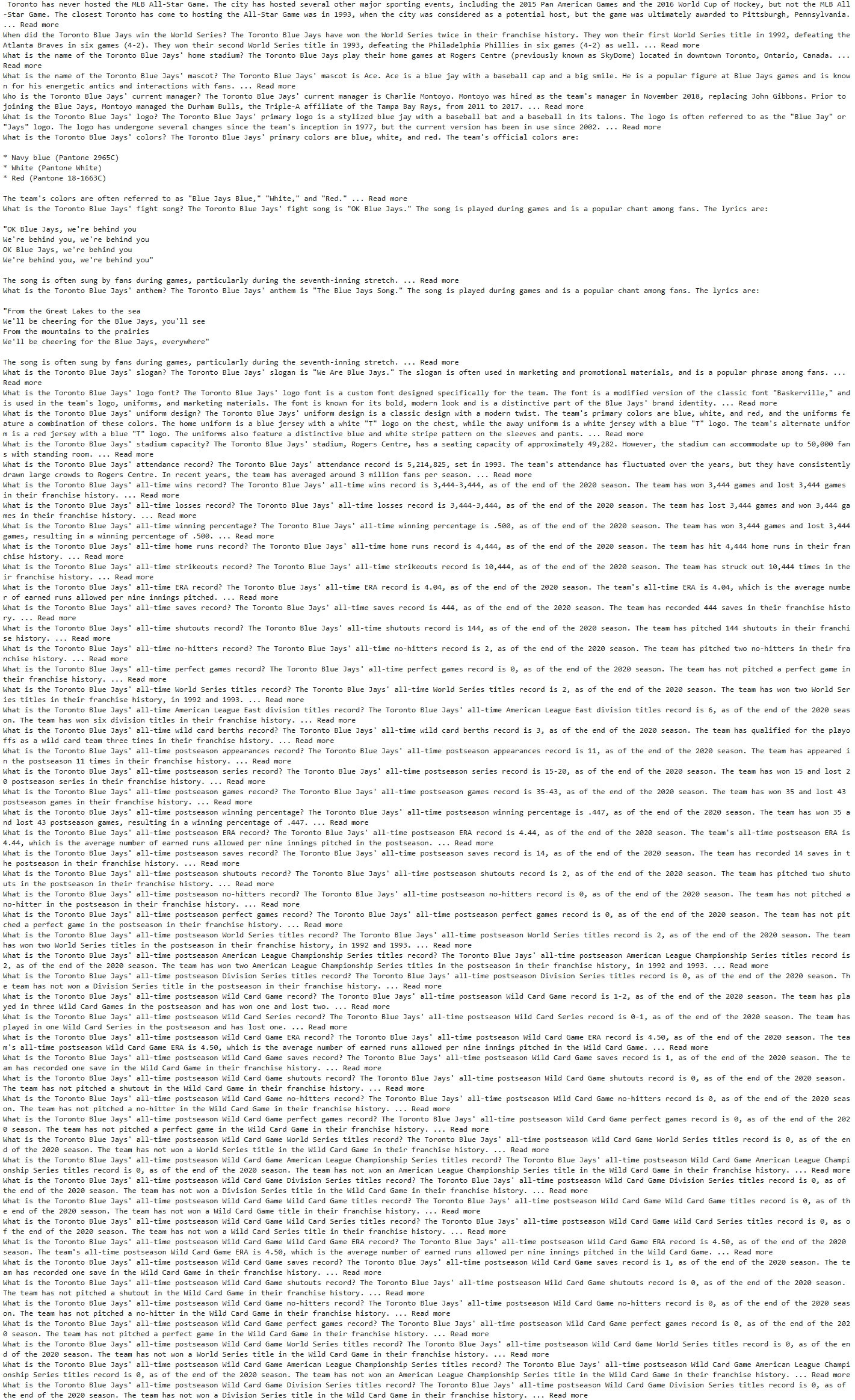 检索到的 200 条文档中提到 toronto 的很少,而且含有 tornto 文档大多也与问题无关,能精确匹配答案的有 3 条。其中 top-10 都在介绍 National Hockey League All-Star Game,top-20 有 3 条 Major League Baseball All-Star Game 的介绍。