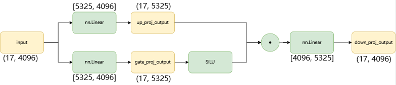 MLP 是一种特殊的 FFN,比传统 FFN 的维度小,利用率高。它引入了门控技术,gate_proj 为门控投影,up_proj 为升维投影,down 为降维投影,SiLU 用于门控过滤信息。