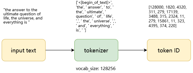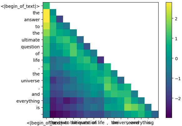 1 2 3 4 5 6 7 8 9 prompt = "the answer to the ultimate question of life, the universe, and everything is " tokens = [128000 ] + tokenizer.encode(prompt)print (tokens) tokens = torch.tensor(tokens) prompt_split_as_tokens = [tokenizer.decode([token.item()]) for token in tokens]print (prompt_split_as_tokens)