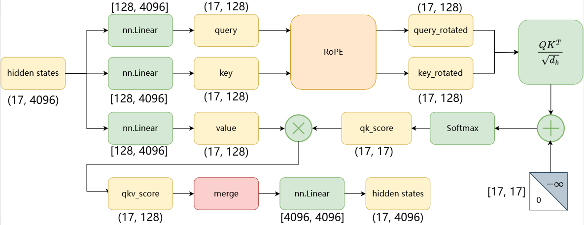 1 2 3 4 5 6 print ( model["layers.0.attention.wq.weight" ].shape, model["layers.0.attention.wk.weight" ].shape, model["layers.0.attention.wv.weight" ].shape, model["layers.0.attention.wo.weight" ].shape )